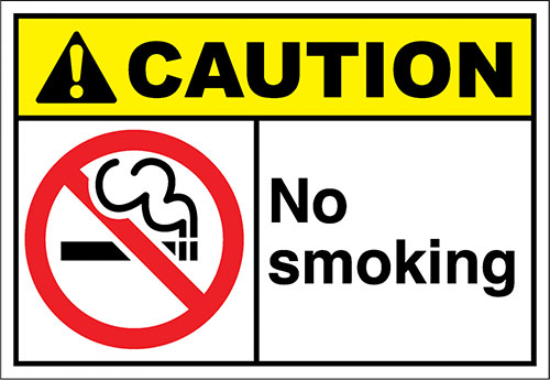Warning signage yang ketiga berikut cukup umum digunakan di mana saja. Terutama di rumah sakit, restoran, cafe maupun salon. No smoking signage biasanya selain berfungsi untuk memisahkan antara ruangan ber-AC dan outdoor, warning signage satu ini juga berfungsi untuk memberi kenyamanan pengunjung yang tidak dapat beradaptasi dengan asap rokok.