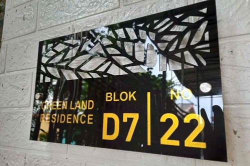 Sebagai salah satu laser cut surabaya, Laserfox akan memberikan insight eksterior estetik melalui nomor rumah akrilik seperti pada gambar berikut. Laser cut akrilik memang selalu jadi idaman dan recommended, karena bahannya yang tahan di setiap cuaca. So, jika anda pasang di luar rumah pun, bahan akrilik tetap awet dan aman sebagai eksterior yang tidak kalah estetik.