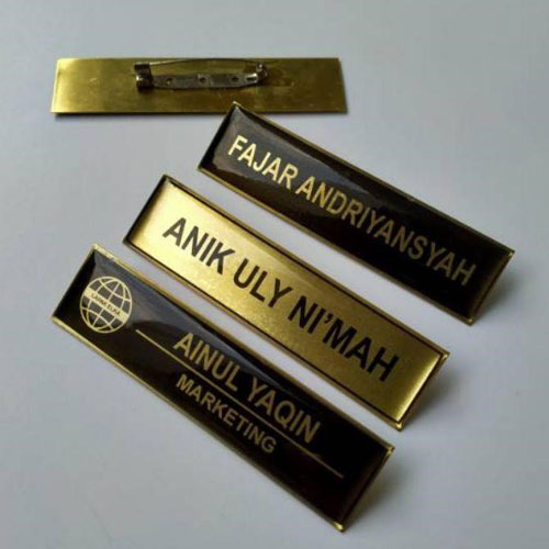 Selain name tag hasil laser cutting, kali ini Laserfox juga akan share name tag kuningan hasil laser grafir. Sebagai salah satu jasa laser grafir Surabaya, Laserfox menyarankan anda yang memang memiliki bidang bisnis dengan struktur organisasi cukup spesifik, dapat menggunakan name tag kuningan grafir seperti ini. Terlihat sangat formal, pembawaan karyawan anda pun juga akan didukung dengan model name tag seperti ini.